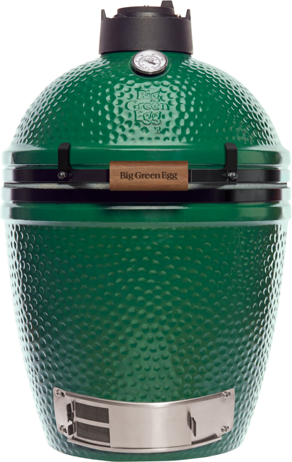 Big Green Egg Medium Charcoal Free Standing Grill-Green with stainless steel cooking grid and porcelain coated steel bands. Call A&A today to inquire/order. 877 836-8466.Read More