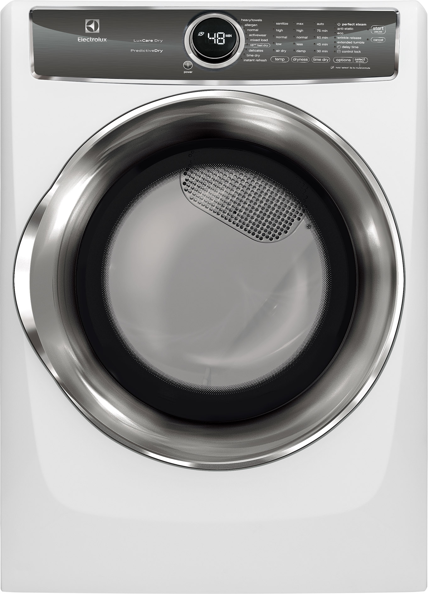 The Electrolux Perfect Steam electric dryer with Predictive Dry has a more precise sensor to protect fabrics from overdrying. Remove wrinkles and quickly refresh items with steam in 10 minutes with Instant Refresh cycle. Quickly dry the items you need most with the 15-Minute Fast Dry.Read More